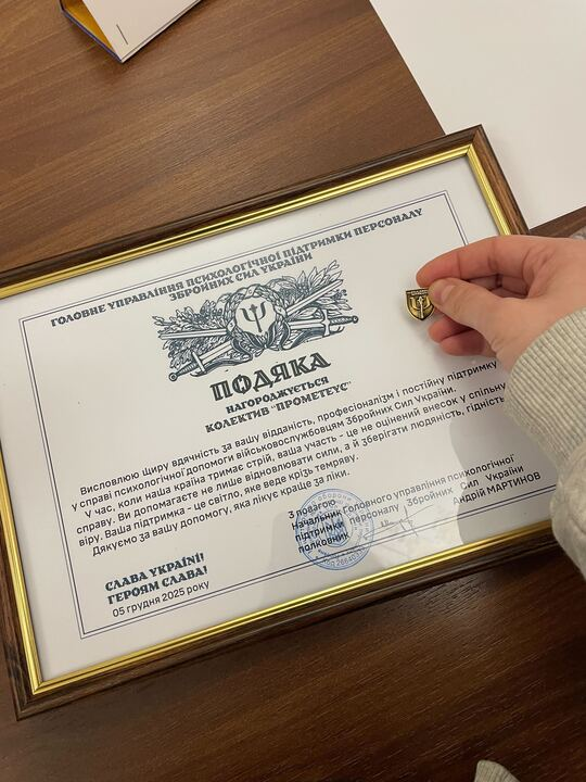 Команда Prometheus отримала Подяку від Головного управління психологічної підтримки ЗСУ — за багаторічну роботу та вклад у підготовку й підтримку військових, ветеранів та їхніх родин.